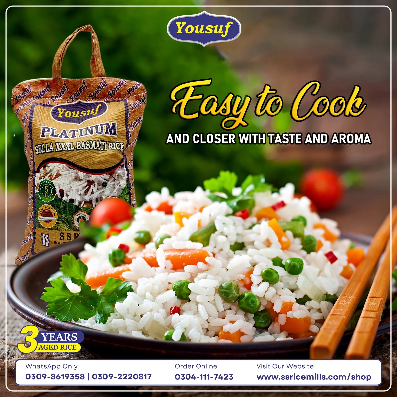 Elevate your culinary creations with the exceptional quality of Yousuf Platinum Sella Extra Long Grain Basmati Rice. Perfect for creating memorable dishes!